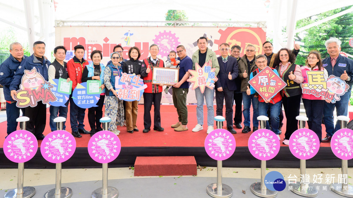 活動現場與會貴賓共同見證桃園市原住民族人口突破9萬人的重要里程碑。第9萬位人口為出生於八德區的泰雅族新生兒,祝福孩子平安健康長大,成為桃園大家庭的一份子。