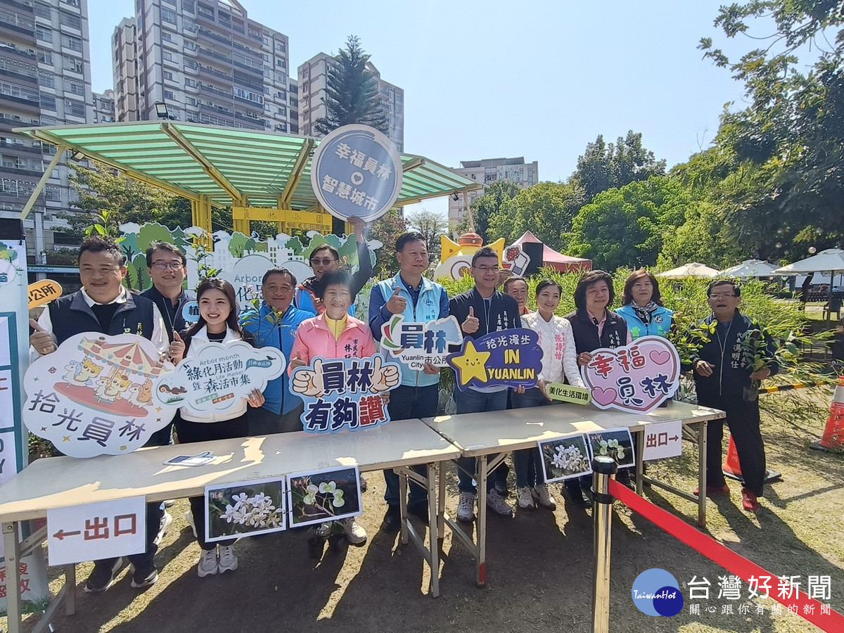 隨著3月12日植樹節腳步將近,員林市公所響應115年植樹月活動,於7日上午在綠意盎然的員林公園舉辦「綠化月活動暨森活市集」,吸引許多市民朋友攜家帶眷前來參與,共同感受春日綠意。活動現場分上下午場免費發送桂花、車桑子(上午)、台灣樹蘭及藍蝴蝶(下午)等共4,000株樹苗,由員林市代理市長賴致富、市民代表會主席張國良、彰化縣政府秘書游筑凱、縣議員曹嘉豪及多位代表、里長共同到場致意並發放樹苗,現場氣氛熱絡,市民踴躍索取。