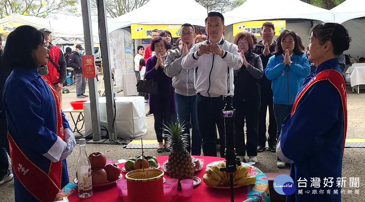 副市長蘇俊賓於龍潭區大北坑休閒農業區出席2026魯冰花季「天穿日」祭天儀式。
