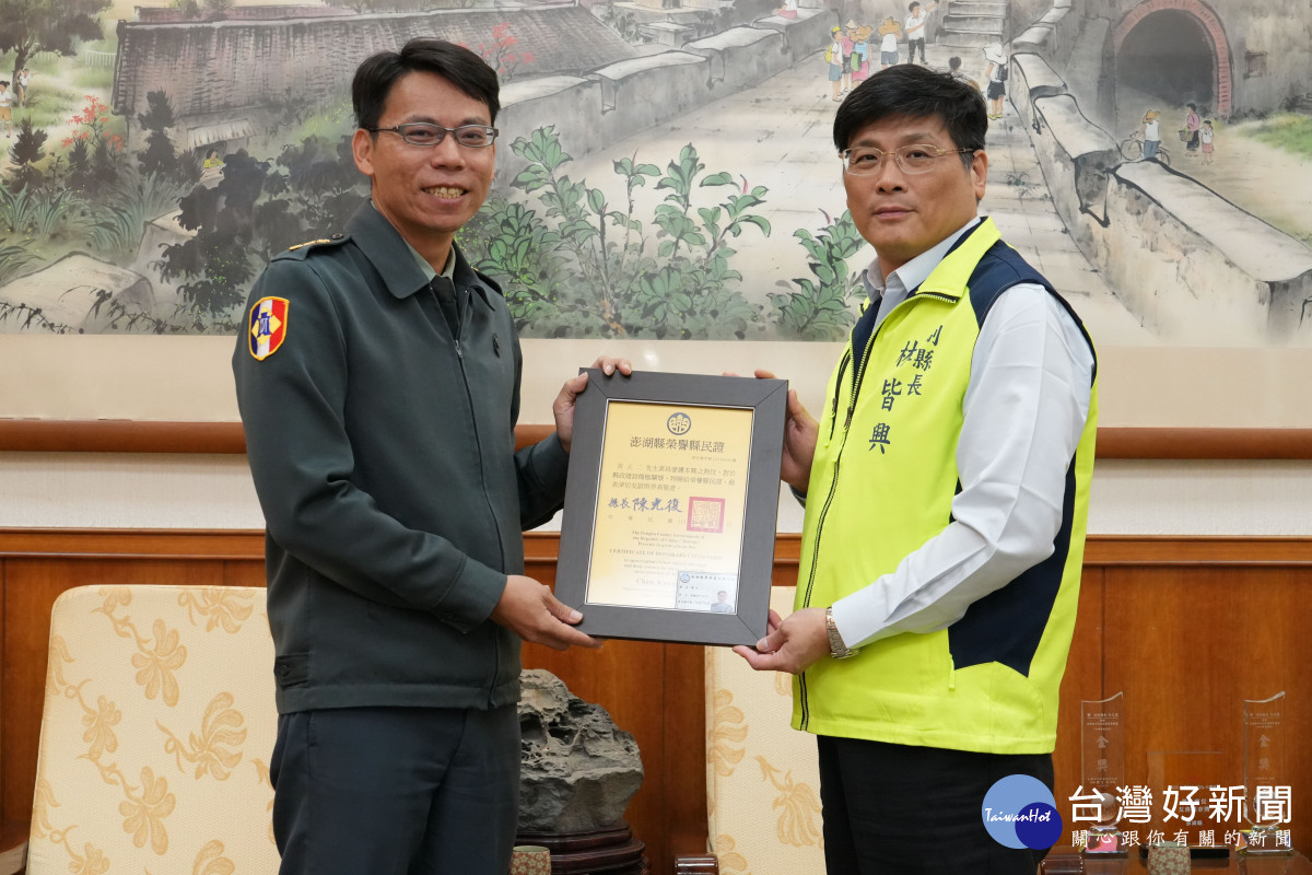 國軍澎湖財務組長黃天二榮調 林皆興頒發榮譽縣民證表彰貢獻