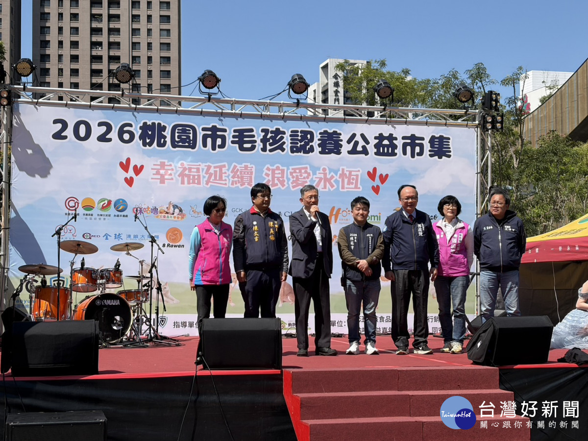 桃園市副市長王明鉅14日中午前往桃園藝文廣場,出席由桃園國際青年商會主辦、桃園市動物保護處指導的「2026桃園市毛孩認養公益市集」。王副市長於開幕式中強調,動保意識是社會進步的象徵,並感謝青商會連續三年與市府攜手,讓這份愛心在桃園持續深耕。