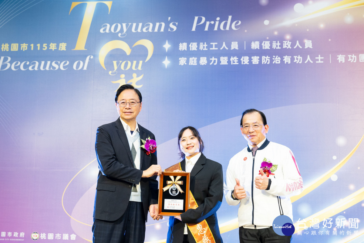 桃園市長張善政14日下午前往桃園區,出席「115年度績優社會工作與社政人員暨家庭暴力及性侵害防治有功人士及團體表揚典禮」。張市長表示,社工、社政人員及家暴與性侵害防治網絡夥伴,長期面對社會上許多不幸家庭與困境案例,工作內容充滿壓力與挑戰,但大家仍以專業與熱忱陪伴服務對象走過難關,將溫暖與正向力量帶給需要幫助的人,是守護社會安全網最不可或缺的力量。