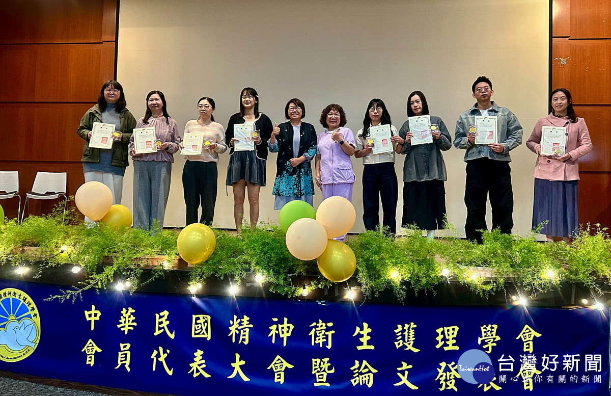 衛生福利部桃園療養院日前參加中華民國精神衛生護理學會辦理的「會員代表大會暨論文發表會」,朱佩嵐、謝予稭、黃心俞及陳心怡等四位獲頒優良護理師殊榮,肯定他們在臨床照護上的專業付出與卓越表現,當日護理團隊在學術上,發表口頭海報 1 篇及電子海17 篇,深獲肯定。