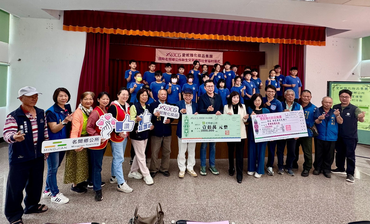 愛妮雅化妝品集團長期投入慈善公益,112年與113年已捐贈名間鄉165萬元經費助弱勢與許多學生,今年3月20日除捐贈鄉公所100萬元外,另捐贈新民國小及華山基金會各15萬元,展現企業回饋社會CSR精神。鄉長陳翰立回贈感謝匾額予該集團總裁陳威中,對這位鄉親表達誠摯謝意,相關補助將由公所統籌運用。