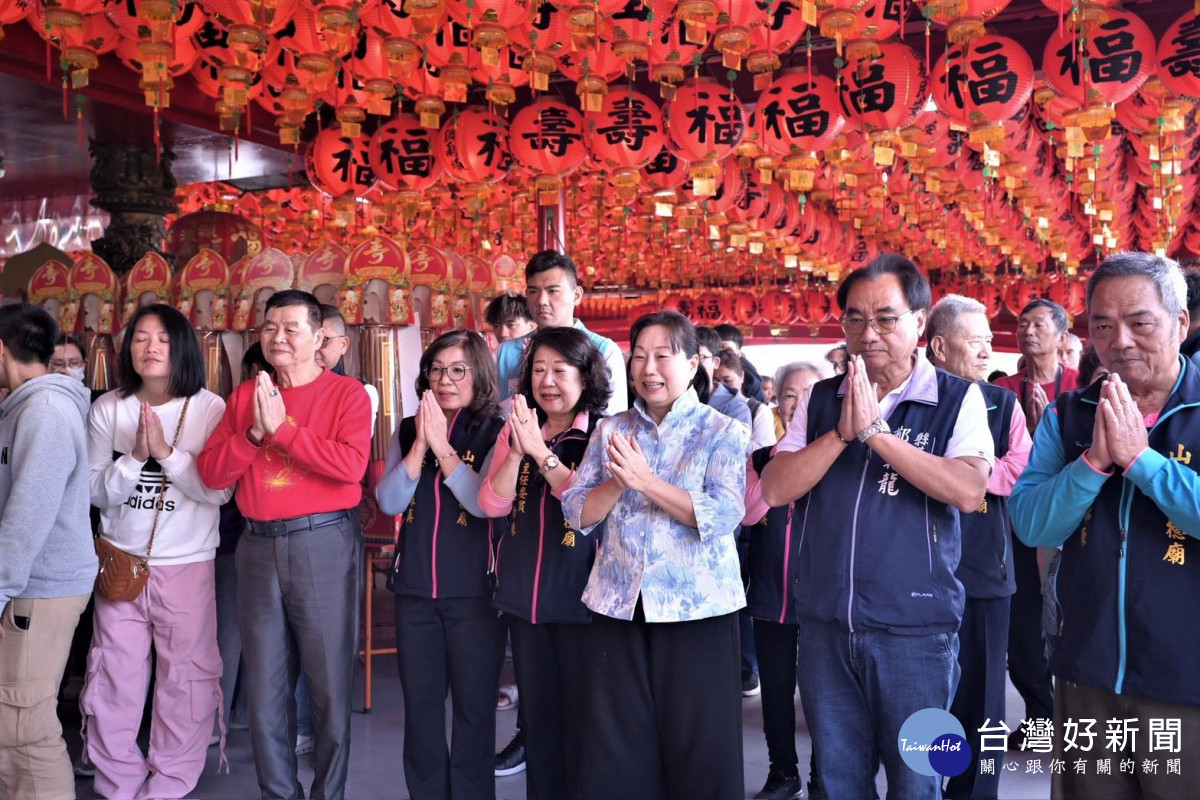 徐縣長在議員鄭乾龍、縣政顧問葉耀輝、山嶺福德廟主委陳妙珠地方士紳與各級民意代表的陪同下,虔誠走訪福德宮廟,並持香參拜,祈求四方眾神庇祐花蓮縣境百姓五穀豐登,也期盼土地伯公保佑花蓮縣運昌隆、四時無災、八節有慶、百業興旺,讓花蓮成為幸福大縣。
