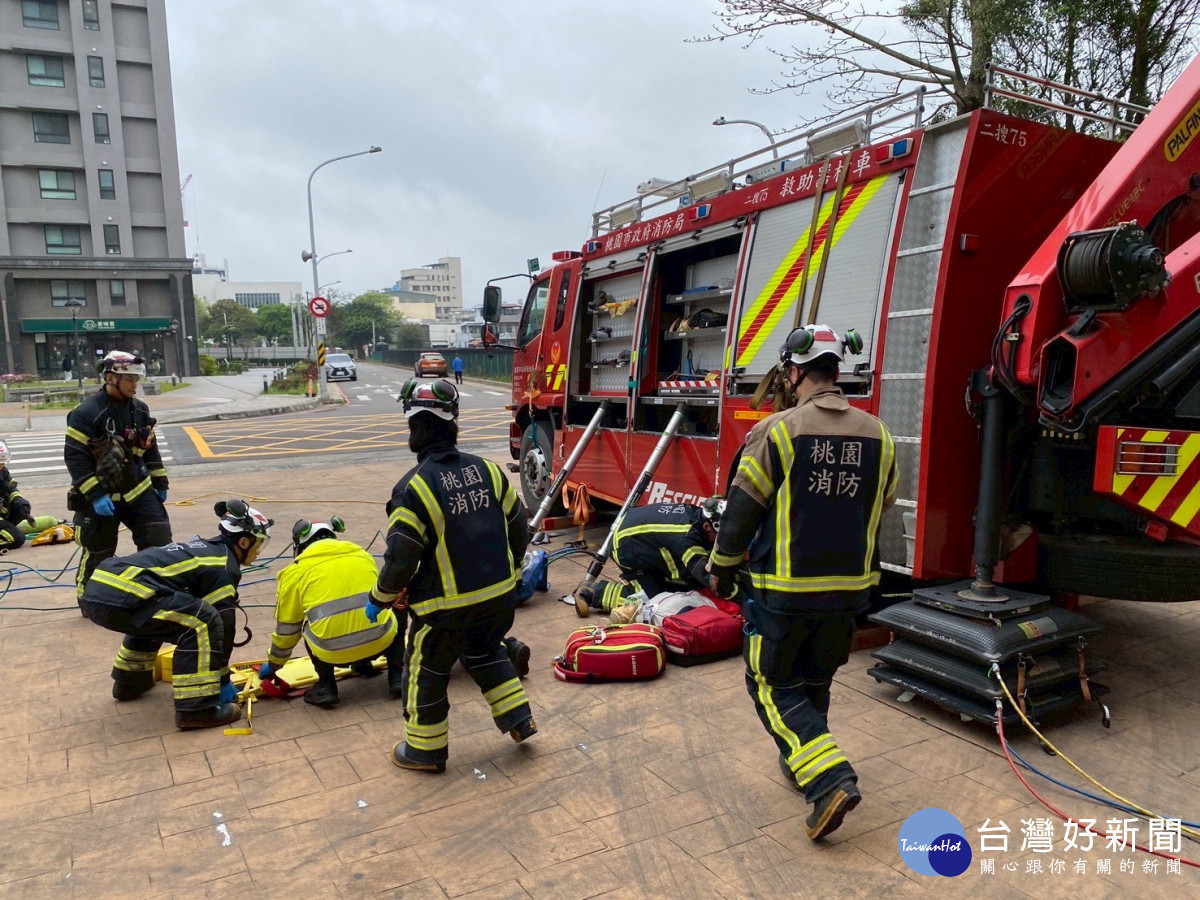 桃園消防特搜展現重型救援實力 跨單位模擬大貨車受困救援演練