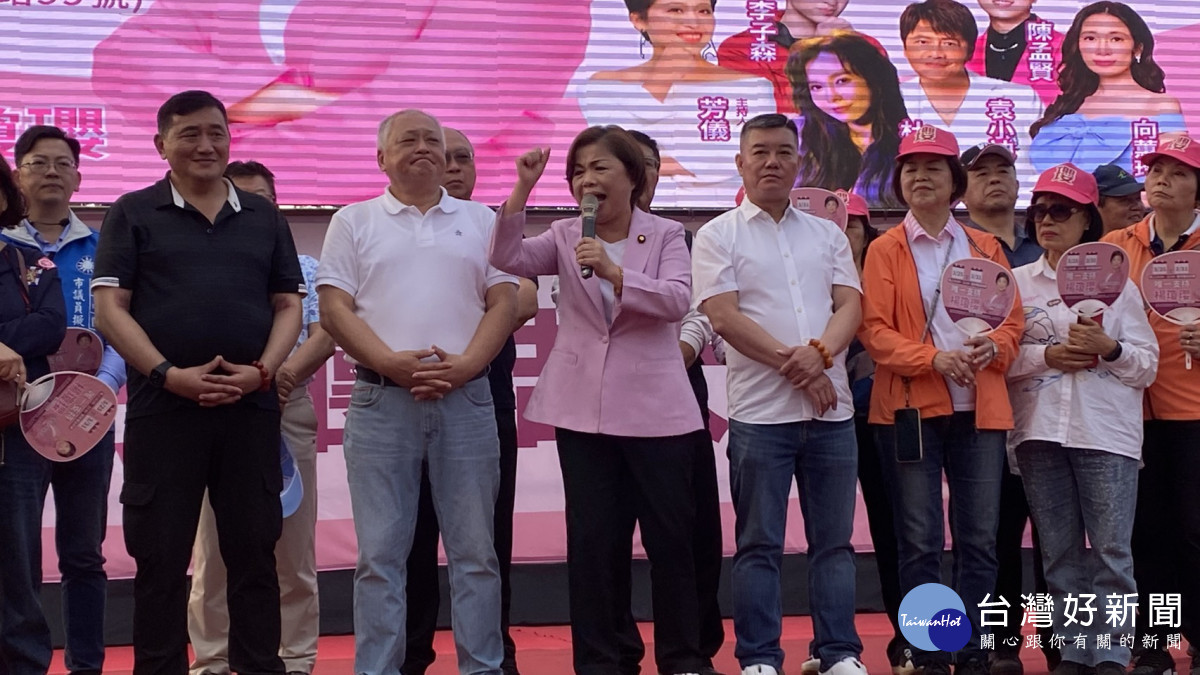 國民黨立委楊瓊瓔登台宣講,提出「媽媽市長2.0」接棒盧秀燕。