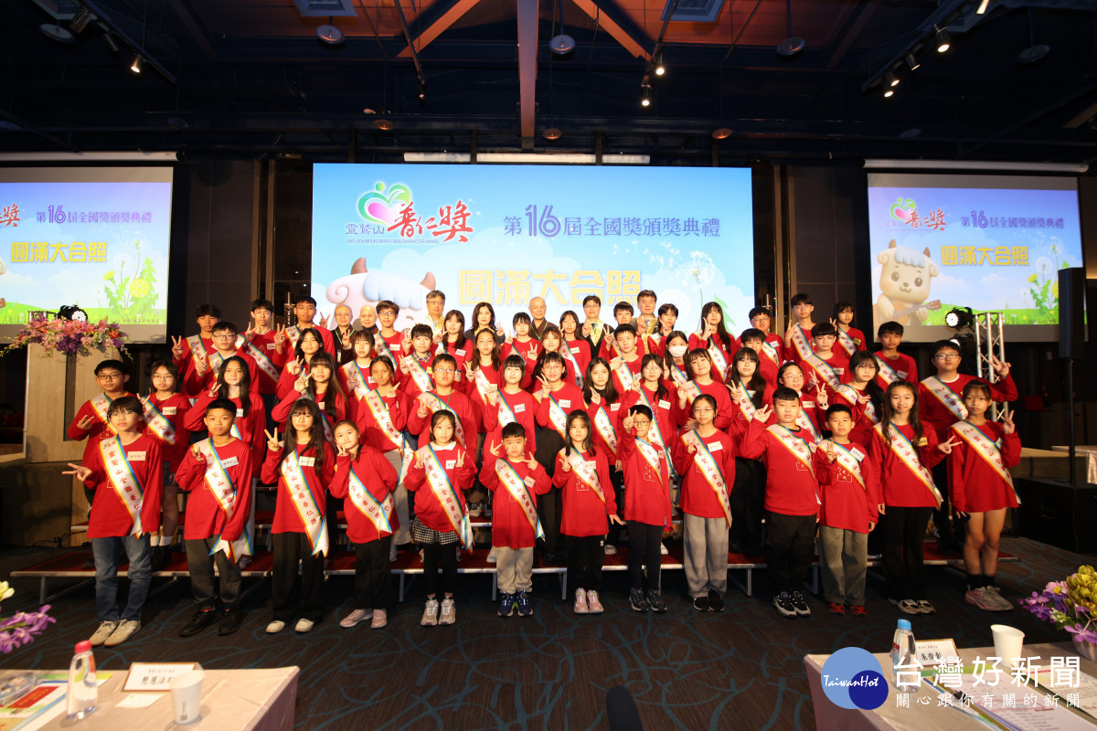 靈鷲山第16屆全國普仁獎頒獎典禮今(22)日於新北市貢寮區福容飯店芙蓉廳登場,表揚60位展現強韌生命力的學子。教育部常務次長朱俊彰、連江縣副縣長陳冠人、貢寮區區長柯建輝、全台各地40多位校長、師長等出席,共同見證孩子們的光榮時刻。