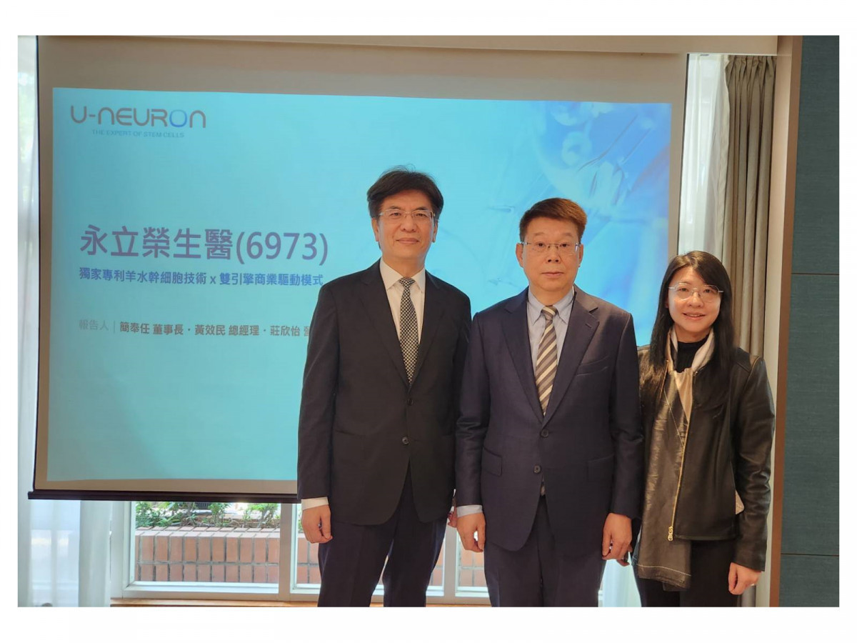 簡奉任(圖中)表示,永立榮為全球首家取得美國「培養與分離羊水幹細胞技術」專利的公司,也是亞洲唯一以羊水幹細胞為核心的新藥研發公司。永立榮長期深耕再生醫療領域,累積完整的羊水幹細胞與外泌體的專利技術,並以此為基礎建立研發平台,發展涵蓋新藥、醫美保養品及保健食品等多元產品線。
