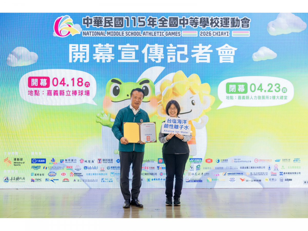 【理財周刊記者顏瓊真報導】全台最具指標性的青年體育盛事「115年全國中等學校運動會」將於4月18日至23日在嘉義縣盛大登場,臺鹽公司力挺本土體育發展,宣布贊助千箱「台塩海洋鹼性離子水」作為賽事用水,應援21項競賽、近1萬8千名體育小將,以專業純淨的飲水補給,助力選手馳騁賽場。