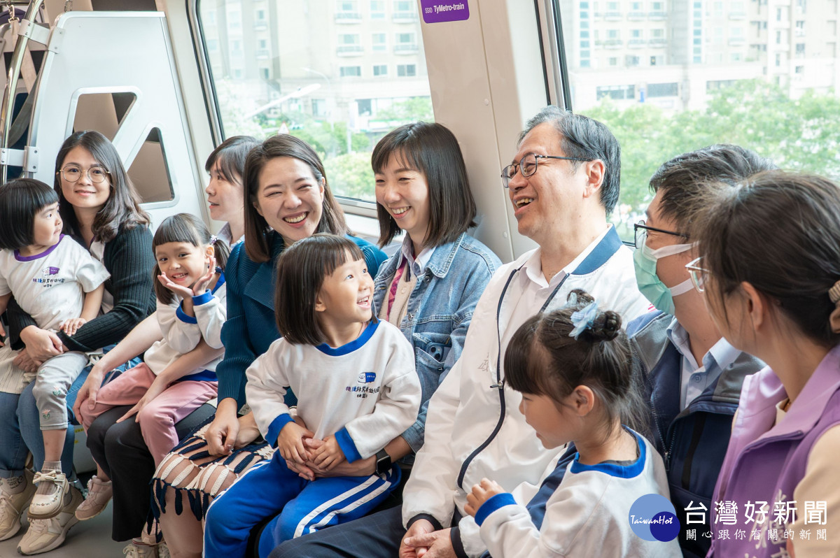 張善政於活動過程中也與孩童進行問答互動,透過車廂內的色彩元素,引導孩子認識不同顏色,讓搭乘捷運不僅是移動過程,更成為學習與探索的場域。