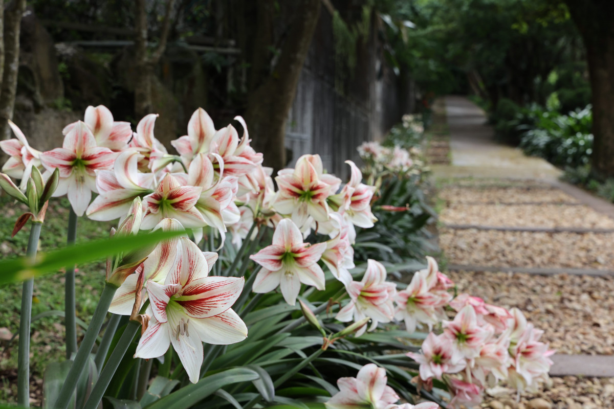 隨著春季氣溫回暖,陽明山花卉試驗中心內的球根植物已悄然甦醒。歷經冬季的養分積累,厚實葉片襯托出的君子蘭以橙紅盛裝登場,展現端莊典雅;而色彩飽滿、花形碩大的孤挺花則如同舞台主角,為園區揭開生命力爆發的序幕。