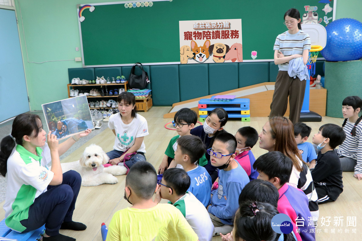 新北市立圖書館吳佳珊館長表示,為了讓特教班學童也能感受閱讀的樂趣,新莊裕民分館「寵物陪伴閱讀」服務特別在兒童節前夕帶著「臺灣狗醫生協會」的狗醫生,前往新莊中港國小特教班,希望透過具有療癒力的毛小孩閱讀陪伴,讓身心障礙孩童有機會參與多元的閱讀活動,學習如何與寵物相處,感受社會的愛及溫暖。