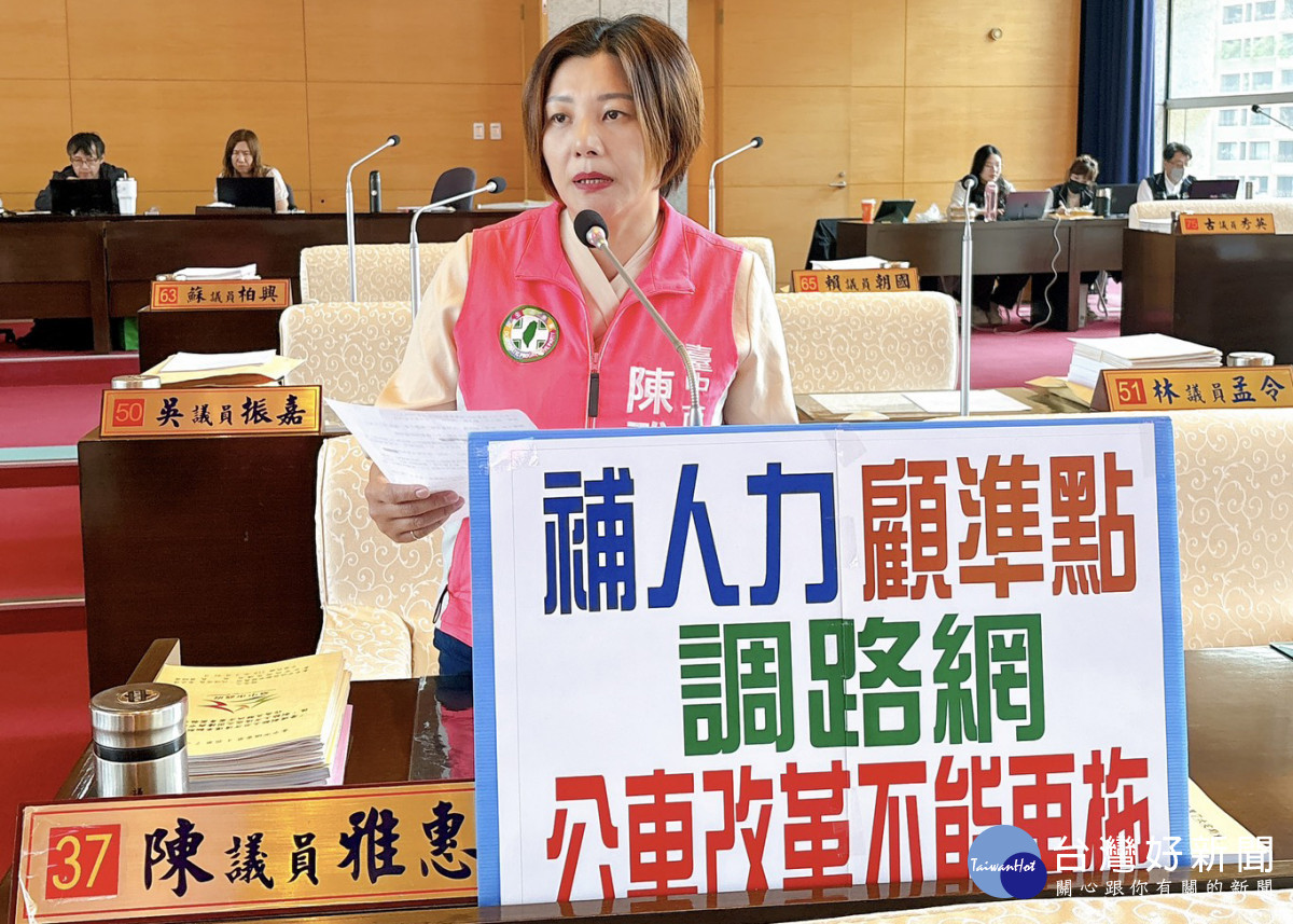 市議員陳雅惠指出,市府雖強調機場聯外已有21條路線、每日520班次,但民眾實際感受落差明顯,目前公車駕駛長期缺工,第一線反映排班吃緊、工時拉長,新進人員留不住,導致臨時減班與脫班時有所聞。市府在擴充路線的同時,未同步補足人力。陳雅惠強調,通勤族最在意的是公車準不準時,市府應完整統計並公開各路線準點率與脫班率,並與補助及評鑑機制連動,強化業者改善動力,避免問題持續發生。
