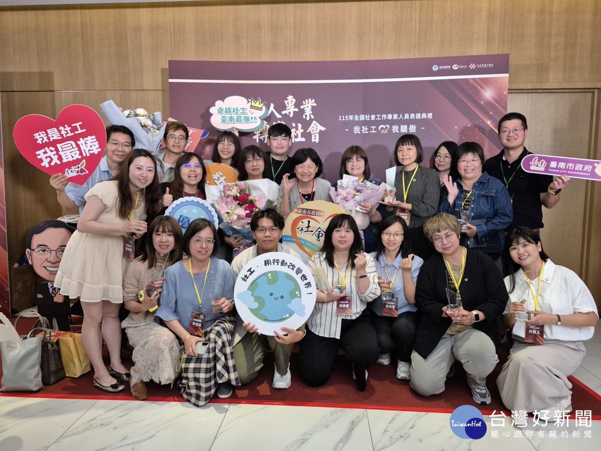 衛生福利部昨日舉辦「115年全國社會工作專業人員表揚典禮」,臺南市公私部門共有15位社工人員榮獲表揚,社會局郭乃文局長率隊北上領奬,並代表黃偉哲市長向得獎社工致贈祝賀花束,感謝社工人員長期在社福崗位上的辛勞付出,並提前祝賀所有社工4月2日全國社工日快樂。