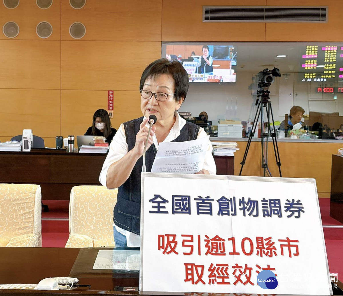 台中市議會定期大會專案報告,市議員張廖乃綸、張瀞分關切台中購物節辦理成效及後續推動情形。要求市府檢討物調券的發放方式,不要讓長輩在烈日下排隊領券。此外,也希望市府增加家用廚餘機的補助名額。