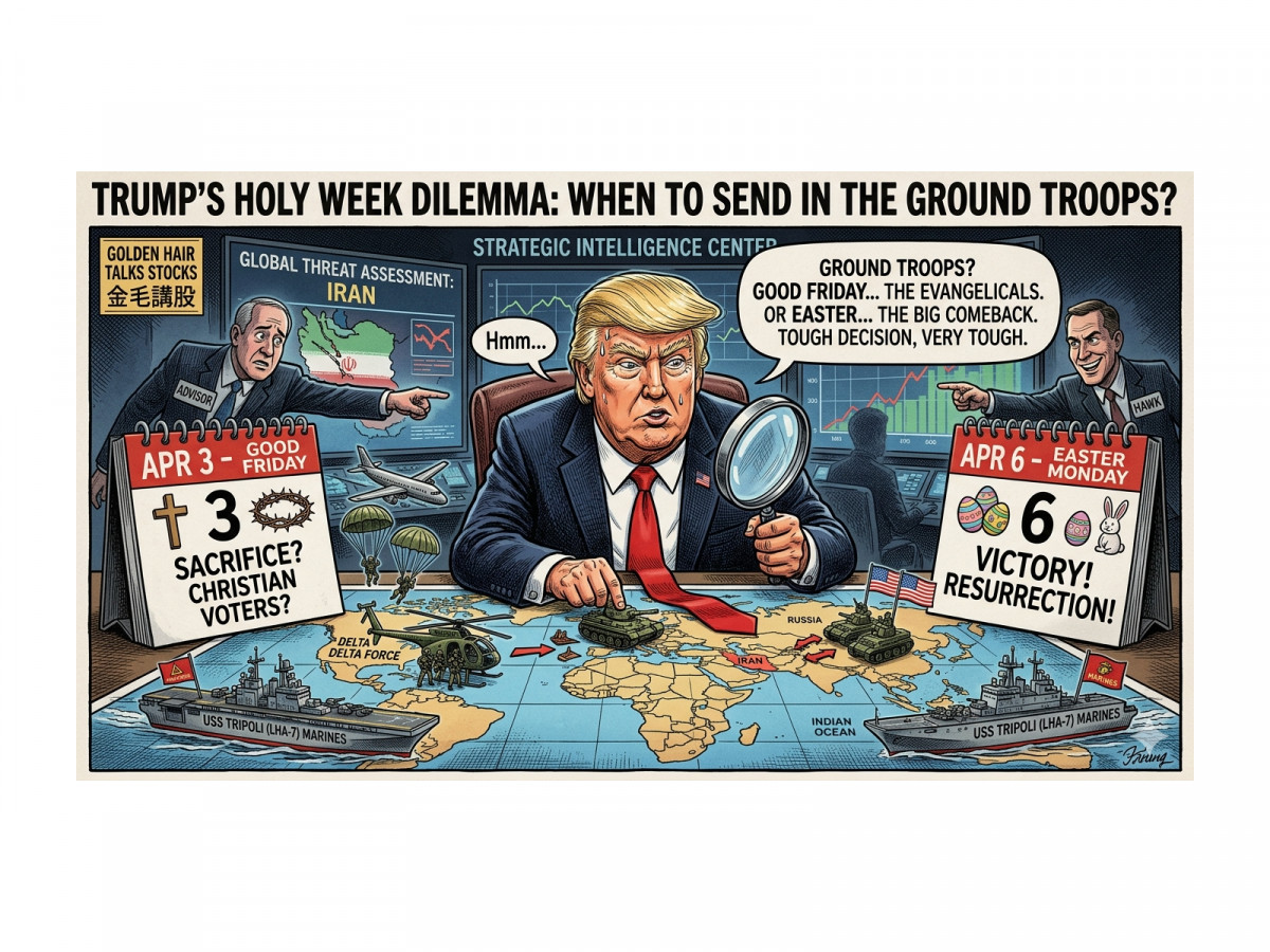 2. 民意對沖: 在肅穆的宗教假期間釋放「和平預期」以穩定支持率,實則是為長假結束後(4 月 6 日復活節週一)的雷霆行動預留戰略空間。