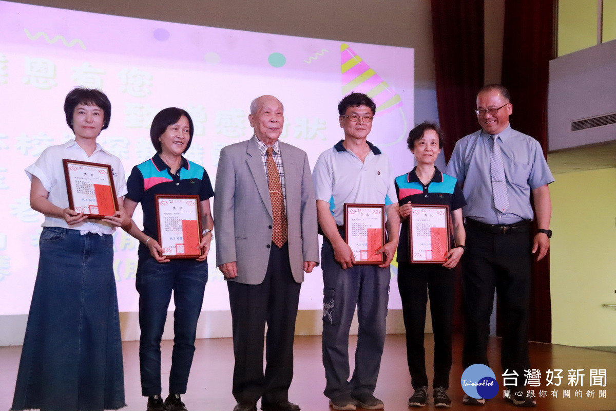 五育高中表揚資深教職員工。(記者扶小萍攝)