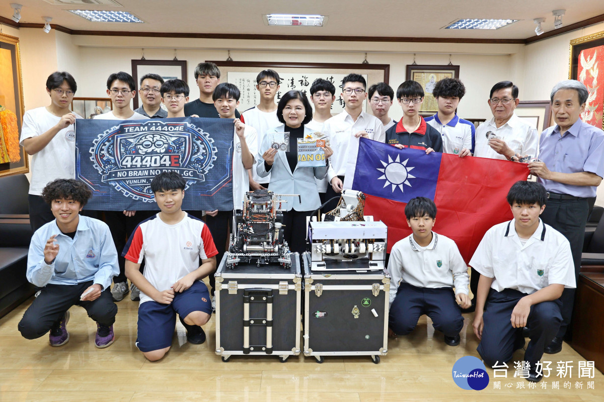 雲林縣長張麗善接見由雲林縣正心中學、斗六高中、斗南高中、維多利亞實驗中學、斗六國中、虎尾科技大學精密機械五專部以及西螺高級農工職業學校等校跨校組成的機器人團隊/翻攝照片