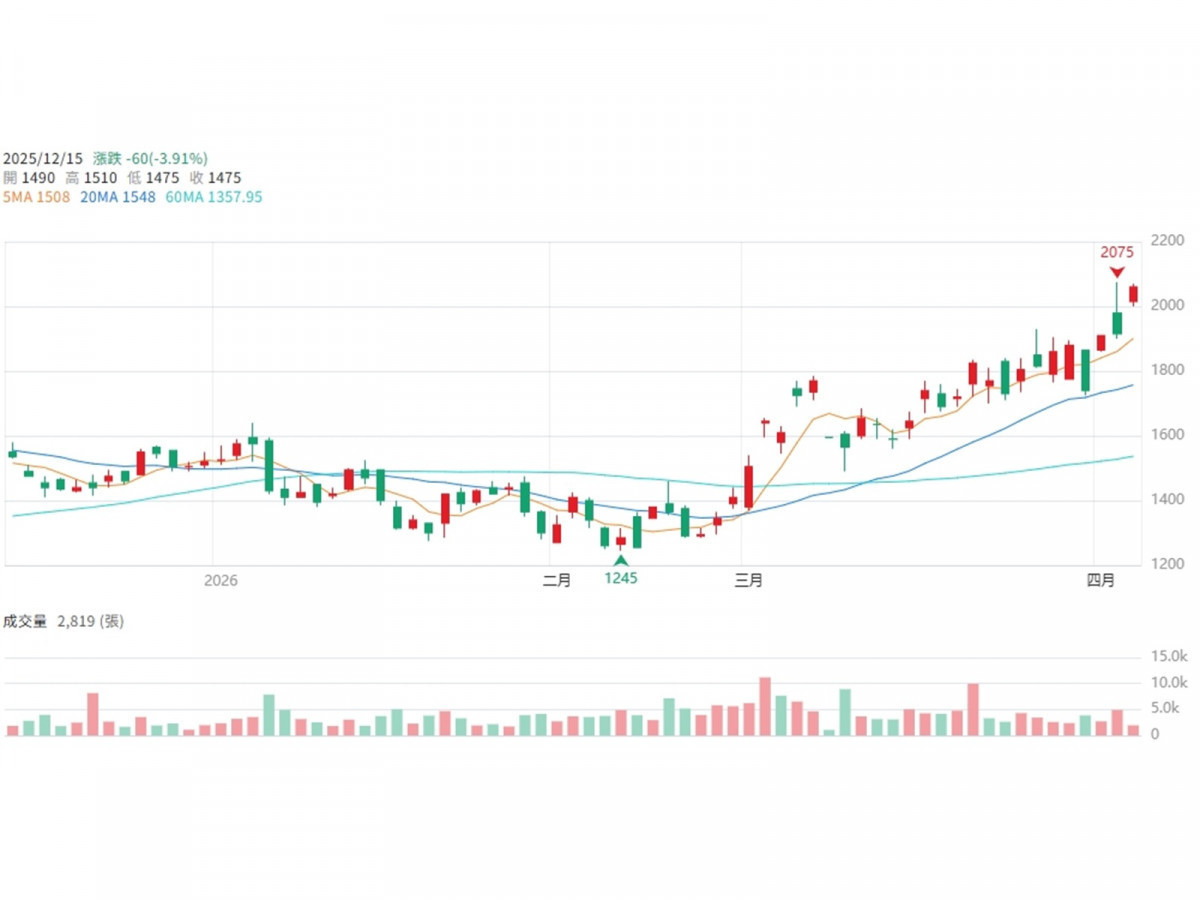 ETF機器人這次的選股清單橫跨數個族群,最核心的主軸仍是AI伺服器供應鏈。貿聯-KY(3665)1月單月營收達74.55億元,年增34.2%創歷史新高,作為NVIDIA與Tesla線束與連接器的關鍵供應商,隨著CoWoS封裝產能擴增,線束規格與數量需求同步上拉。健策(3653)在AI散熱族群中具備指標地位,資料中心功耗密度持續攀升,均溫板與熱管的需求方向並未因市場震盪而改變。清單裡同時出現德律(3030)與牧德(3563),透露出選股帶有資本支出周期的邏輯,台積電2奈米製程下半年量產時程漸趨明朗,PCB與光學檢測設備訂單能見度隨之拉長,這類中游設備廠往往在製程轉換前夕最容易被資金鎖定。