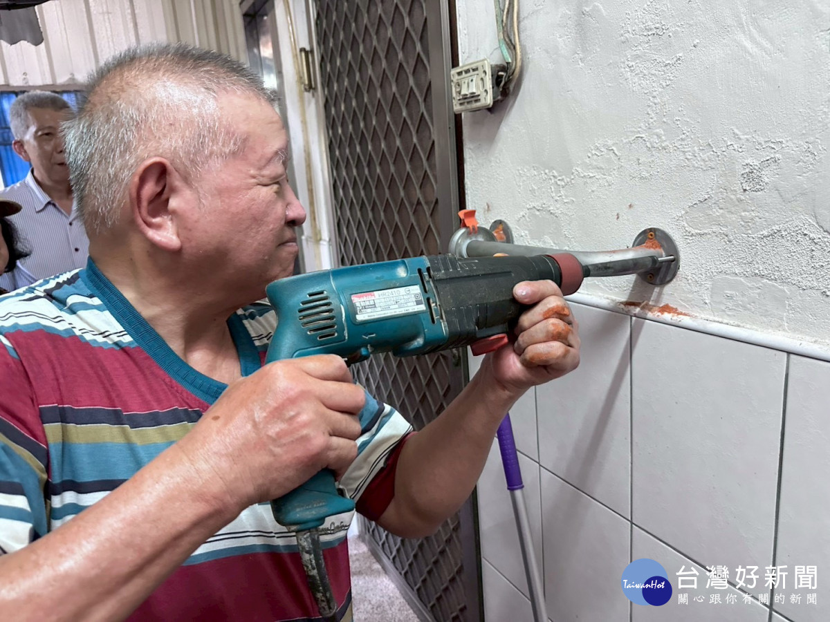 嘉義縣社會局與「社團法人笁樂種子基金會公益協會」11日結合全台各地施做扶手專家,完成安裝近500戶居家及公共空間的扶手/縣府提供