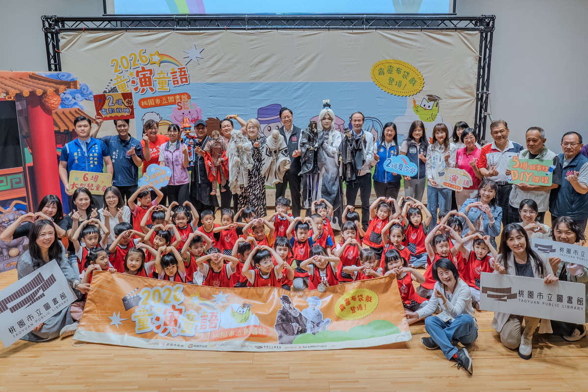 桃園市長張善政14日下午前往桃園市立圖書館總館,出席「童演童語兒童閱讀推廣活動-啟動儀式記者會」時表示,為提升兒童閱讀興趣,市府攜手霹靂國際多媒體,將布袋戲IP轉化為兒童劇形式,自4月26日起至10月17日期間,規劃多場兒童劇、夏令營及手作體驗,透過生動劇情與Q版角色讓閱讀不再侷限於書本,引導孩子主動親近閱讀、打造兒童閱讀新體驗。