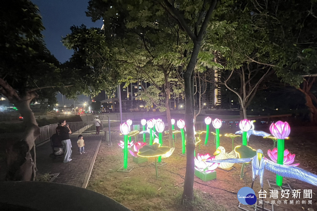 桃園燈會圓滿落幕後,精彩光影魅力持續延伸至龜山區,為地方夜晚注入嶄新活力。市府水務局將龜山公滯一滯洪池進行改善工程,透過濕轉乾規劃設計,將自然地景結合燈光藝術,打造兼具休閒、觀賞的夜間新亮點,為龜山地區民眾帶來感動與驚喜。