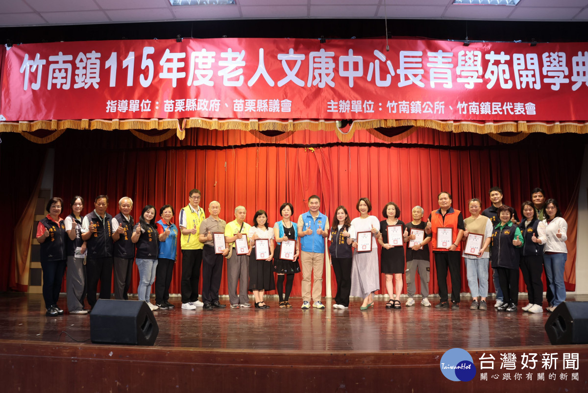 縣長鍾東錦表示,苗栗縣進入超高齡社會,截至3月底老年人口數已達10萬8496人,縣府除了積極招商引資增加就業機會讓年輕人留在苗栗以外,更要與公所合作讓地方長輩退休生活更快樂豐富,竹南鎮公所及鎮代會願意扛下責任規畫開辦課程,縣府當然盡力協助,一起將長青學苑辦好、課程越來越豐富,鼓勵長輩盡量走進社區,多多參與活動讓生活更加多采多姿。