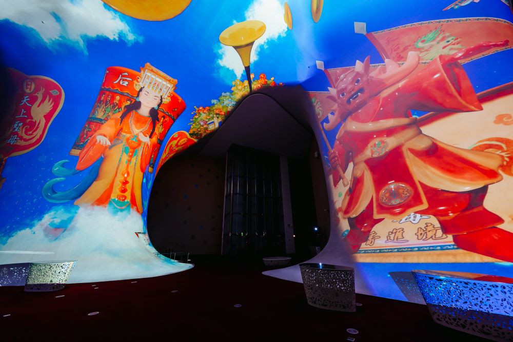 台中國家歌劇院-光之曲幕-黑碼藝識《BOBEE.繞境狂想》以數位光雕結合浩瀚國樂,重新詮釋媽祖繞境的震撼體驗。(圖/臺中國家歌劇院-攝影林峻永)