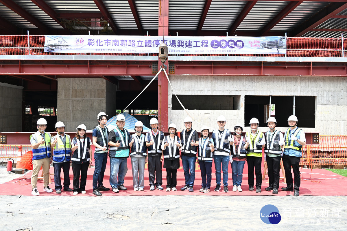 南郭路立體停車場上梁,預計115年11月完工。圖/彰化縣政府提供