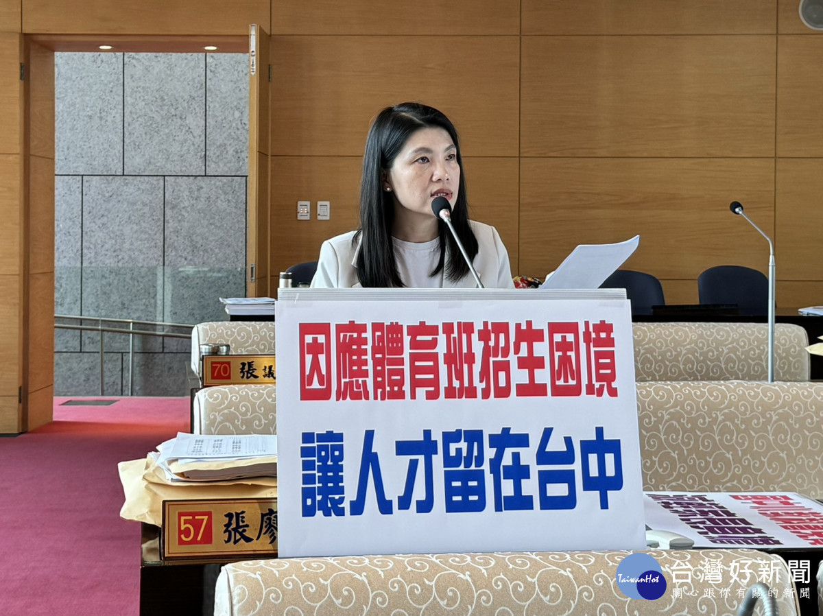 市議員蘇柏興說,115年全國中等學校運動會目前正進行中,台中市代表隊目前取得67金牌、72銀牌、92銅牌,暫居全國第一,他感謝選手們全力以赴,也強調培育青年優秀運動選手,從國小、國中到高中的三級銜接必須規劃完善、無縫接軌,學校的相關場館、設備也應該擴充,投資下一代,是最正確的選擇。市議員張廖乃綸也說,受少子化衝擊,許多學校的體育班招生也陷入瓶頸,根據現行規定,如果招生人數不足15人,就可能導致體育班無法成班,希望教育局協助招生,讓熱愛體育的孩子能留在台中順利生學,將體育人才留在台中。