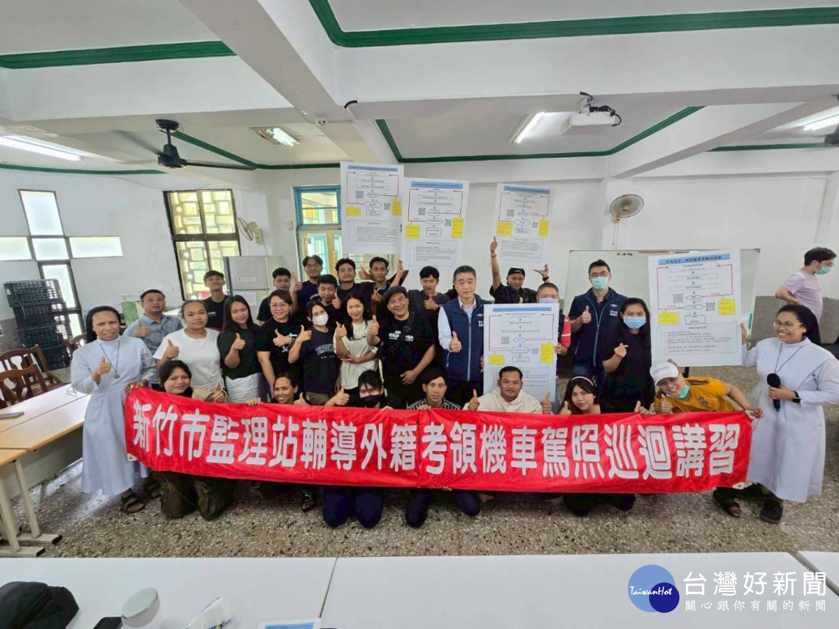 保障外籍人士在台用路安全並提升機車考照及格率,新竹市監理站19日上午由站長黃友川親率蔡股長及承辦同仁,前往「財團法人台灣天主教會新竹教區(移民移工服務中心)」舉辦外籍人士機車考照巡迴宣導活動。現場吸引來自印尼、菲律賓等地的移工朋友約 40 餘人參與,透過修女即時翻譯與趣味有獎徵答,現場互動熱烈,展現政府跨國界便民服務的溫情。
