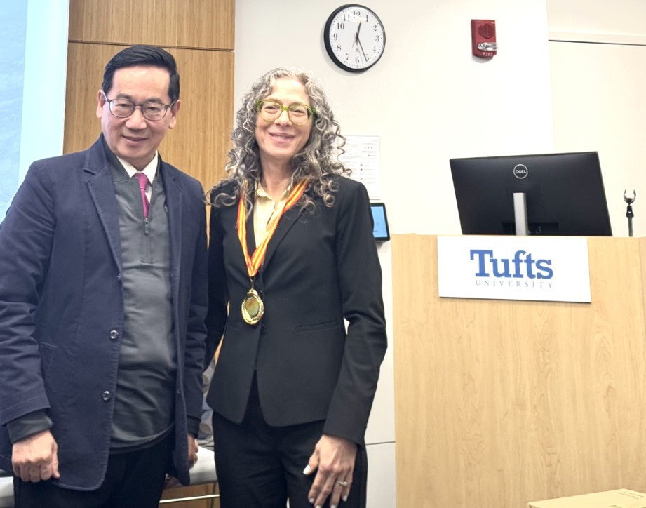 此次演講由塔芙特大學全球衛生中心主辦,吸引了多位專注於醫療AI領域的知名學者參與,包括Honorine教授與Ramnath教授等。張教授藉助臺灣醫療體系的成功範例,深入分析了AI如何在臨床決策及公共衛生中發揮關鍵作用,並分享了秀傳在智慧醫療推廣中的具體實踐及未來計畫,獲得與會學者的廣泛關注。