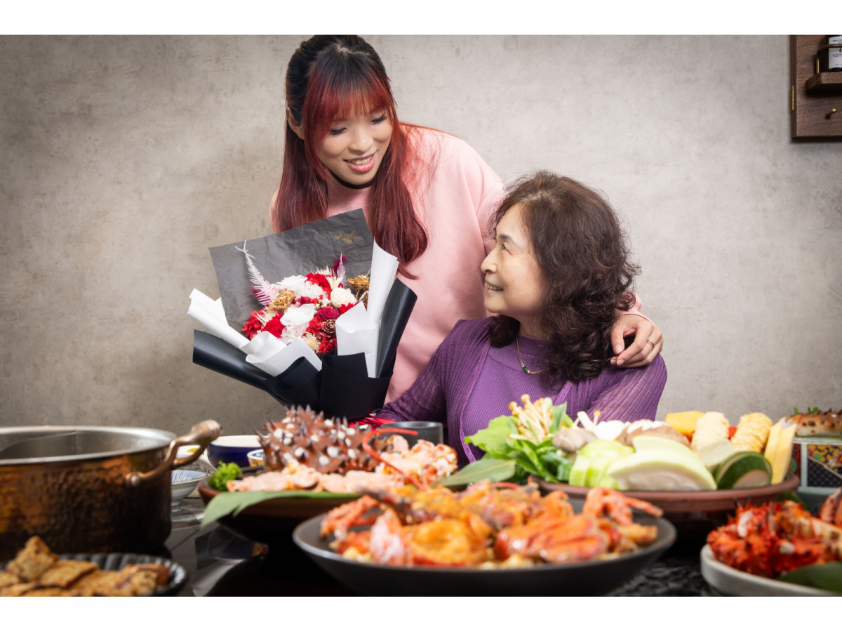 「二本松涮涮屋」以一席來自北國的海味盛宴,將心意細細安放於每一道料理之中。期間限定「北國花咲蟹・極寵雙人盛宴」,嚴選日本北海道活花咲蟹入饌,每隻重約1-1.5公斤,橘紅帶刺的外殼如盛放之花,張揚卻不失優雅,肉質厚實飽滿、鮮甜濃郁,彷彿將寒海的純粹與時間的深度,一併凝縮於舌尖,搭配日本黑毛和牛沙朗,為母親獻上一場極致寵愛,每套14880元+10%。即日起至6月底,點購「北國花咲蟹・極寵雙人盛宴」即贈代官山花苑手做永生花康乃馨一束,讓愛優雅綻放。