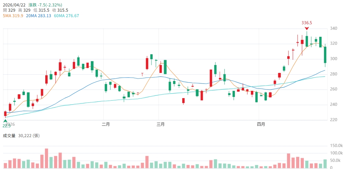 法人預期2026年營運仍具雙位數成長空間,EPS將挑戰16.2元,明年將會突破20元大關,現階段股價拉回重回月線噢300元大關以下值得分批留意布局,現階段籌碼偏亂,建議可等待較明顯的走出震盪整理後再來考慮操作,市場法人目標價看415元,潛在獲利達38%。