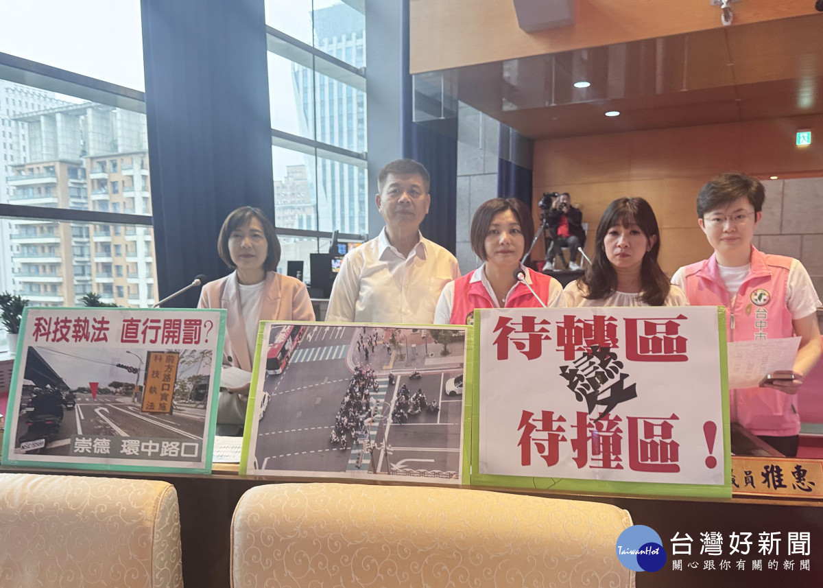 市議員陳雅惠表示,該路口待轉格僅容納約5、6輛機車,但下班尖峰卻湧入30輛以上,導致機車外溢占用斑馬線,甚至延伸至車道,騎士同時面對直行車與行人風險。她質疑,民眾依規定二段式左轉卻被迫違規,若遭檢舉開單,責任究竟在誰?批評這種規劃就是在路口設陷阱,讓民眾在「被撞」與「被罰」之間做選擇。陳雅惠強調,交通設計應回應實際流量,而非僵化套用制度,要求交通局立即會勘、重新計算尖峰車流,擴大待轉區範圍,並評估機車直接左轉或號誌分流機制;同時在改善前建立申訴免罰機制,避免「非自願性溢出」遭舉發。