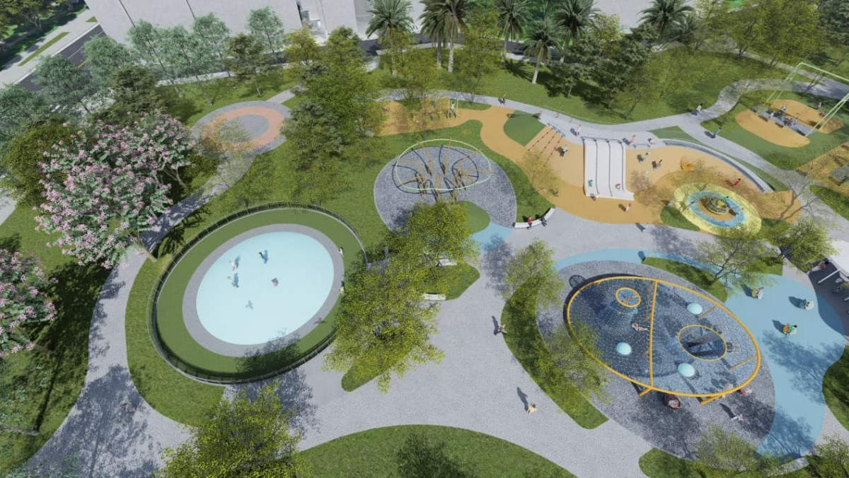 為落實全齡共融理念,園區同步設置社區型健體區,提供長者與居民休憩與運動空間。景觀方面,入口將打造「萌鹿寶寶」裝置藝術,強化場域識別,營造親子友善氛圍。