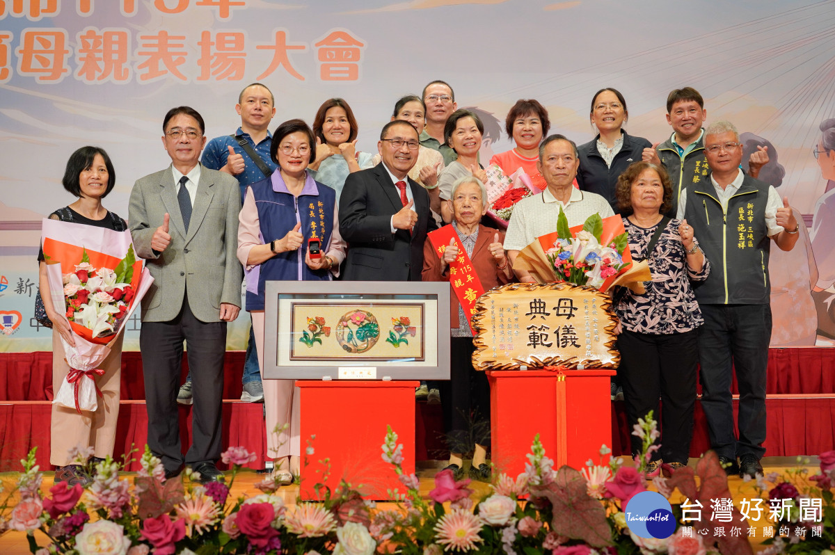 母親節將屆,為感念母親的辛勞並喚起社會大眾對家庭倫理的重視,新北市長侯友宜今(25)日於市府6樓大禮堂表揚56位模範母親。侯友宜致詞時感性表示,媽媽永遠是我們的最愛,一路陪伴子女長大、茁壯,當她們老時,換我們來陪伴她,並祝福全天下的媽媽們平安、健康、喜樂。