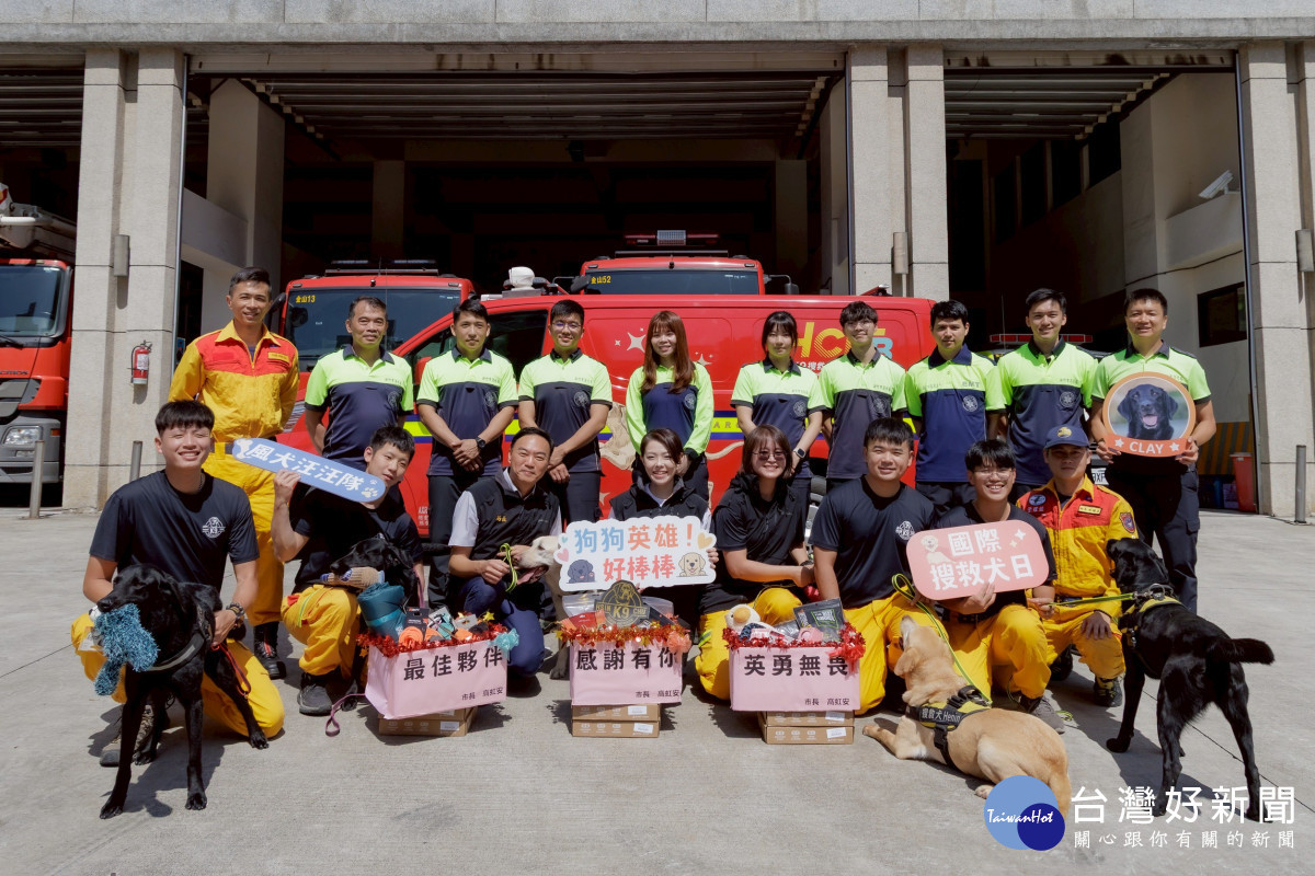 「國際搜救犬日」為每年4月的最後一個星期日,為慰勞長期段入訓練與救災任務的搜救犬及領犬員,市長高虹安26日前往消防局搜救犬訓練場,慰勞辛勤付出的搜救犬與訓練人員,肯定其在各類災害搶救任務中展現的高度專業與絕佳默契,持續守護市民生命安全。