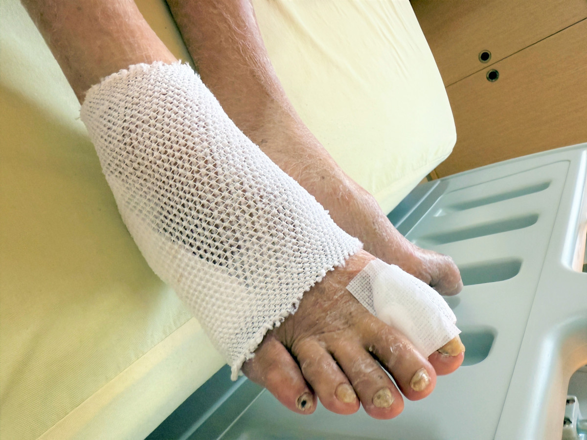 一名80歲男性,長期患有糖尿病與高血壓,近期出現行走時小腿痠痛、休息後可緩解的情形,但未加以重視。數週後症狀逐漸惡化,即使靜止時也會感到疼痛,且腳趾出現傷口久未癒合。經衛生福利部桃園醫院心臟血管外科醫師詹智翔安排電腦斷層血管攝影檢查後,確診為周邊動脈阻塞,經手術治療並搭配完整護理照護,病情才逐步改善。