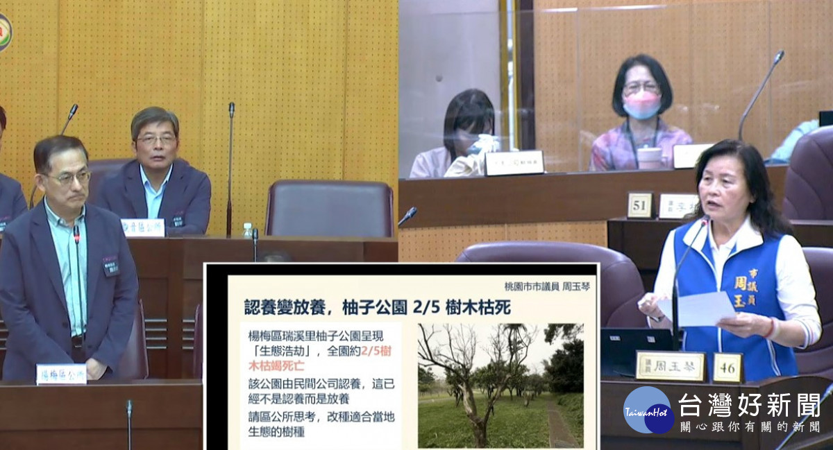 除了交通議題,周玉琴對地方環境品質也極其關切。她指出,楊梅區「柚子公園」內的柚子樹近年枯死情況嚴重,要求區公所農經課應發揮專業,主動協助認養企業進行病蟲害防治,而非任其荒廢。