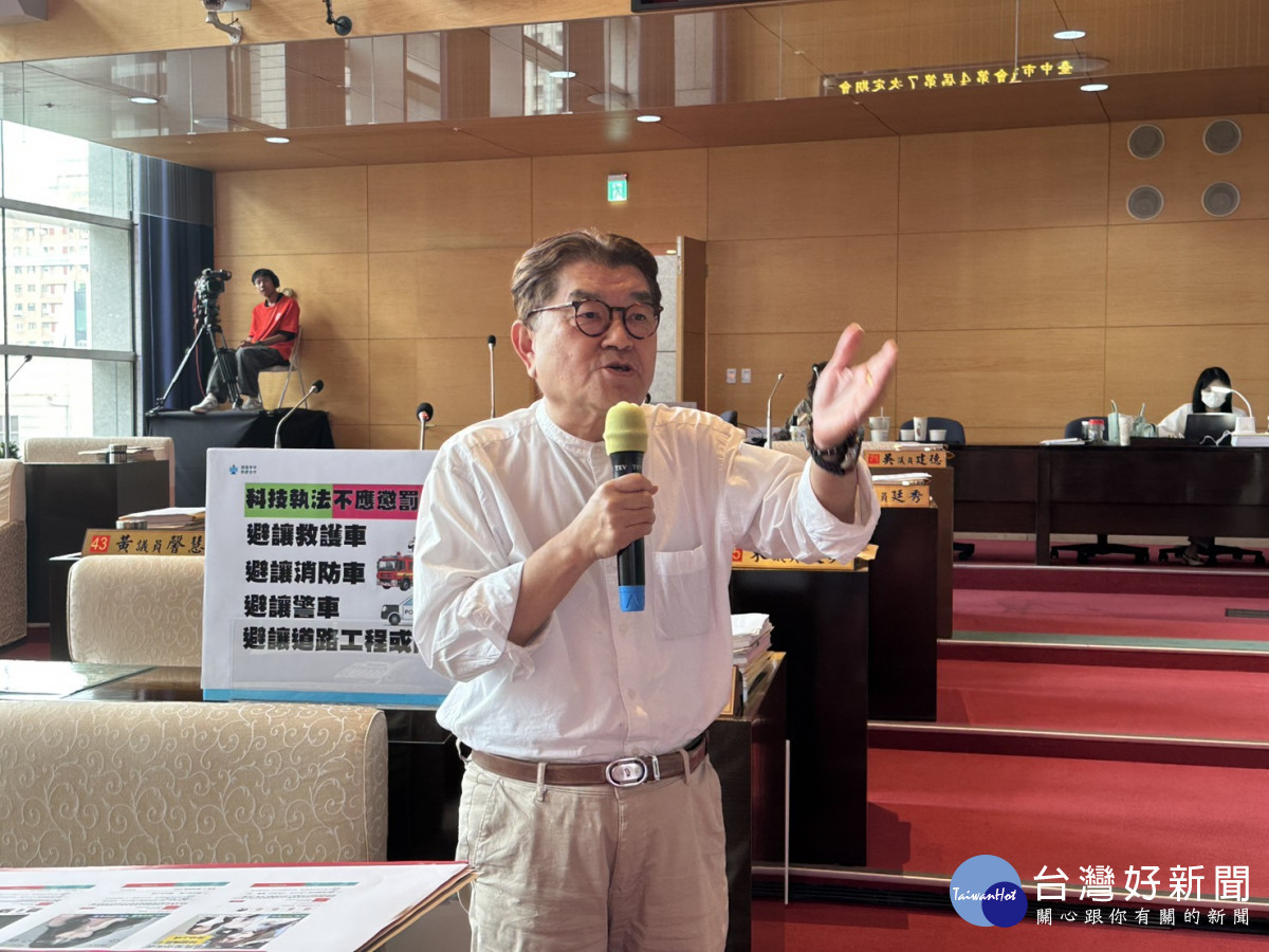 台中市設置有科技執法設備的路口截至2025年底已達68處,但有些民眾為了避讓前方的消防車、救護車不慎違規,卻仍遭到科技執法拍攝並開單,想提出申訴還得自己舉證,市議員李中指出,這根本是懲罰良好公民,要求警察局應從寬認定,不要造成民眾困擾。