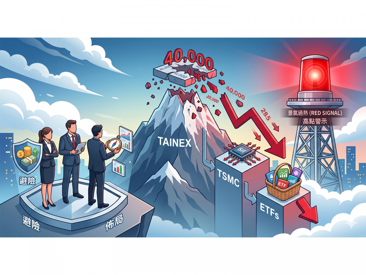 ChatGPT 輔助解析: 台股4萬點關卡面臨壓力測試,市值型ETF進入「獲利了結」與「結構調整」期。景氣紅燈代表基本面續強,但股價已提前反映樂觀假設。操作建議:避開溢價過大的標的,優先關注台積電是否止跌。若指數持續站不穩4萬點,應保留現金比重並設定再平衡規則。