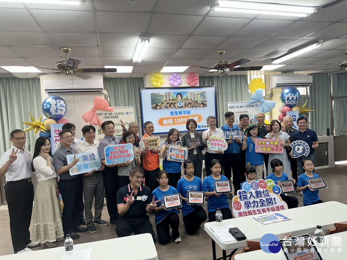 南投縣政府積極打造智慧校園,以三年時間寬列1.9億元全額預算,28日終得以宣布全縣每位國中小學生人手一台平板,今日下午於南投市漳興國小盛大舉行宣布「生生有平板」全面達標活動。縣長許淑華與現場貴賓及師生共同見證令人振奮的一刻,宣告南投縣已成功讓全縣每位中小學生都擁有一台專屬的數位學習平板,真正落實數位平權與智慧教育。