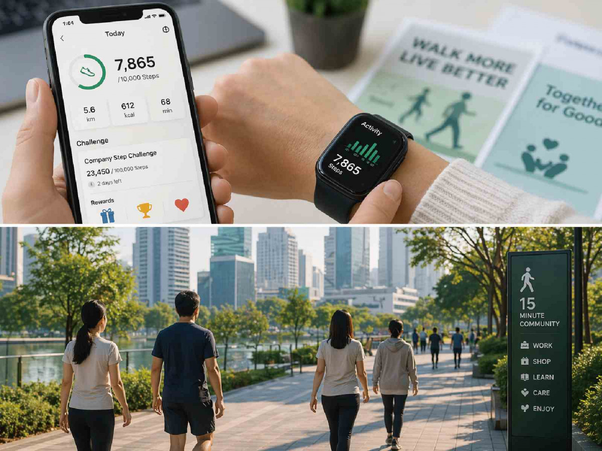 除了基礎建設,企業也開始從日常行為切入移動轉型。近年透過數位平台導入步數機制的做法逐漸增加,企業將員工的步行轉化為可回饋的行為。像Johnson & Johnson的健康計畫,或Activy、Noonday等平台,皆透過應用程式記錄步數,並連動獎勵、福利或公益機制。這類設計並不直接改變交通工具,而是讓「多走幾步」成為一種更容易被實踐的日常選擇。