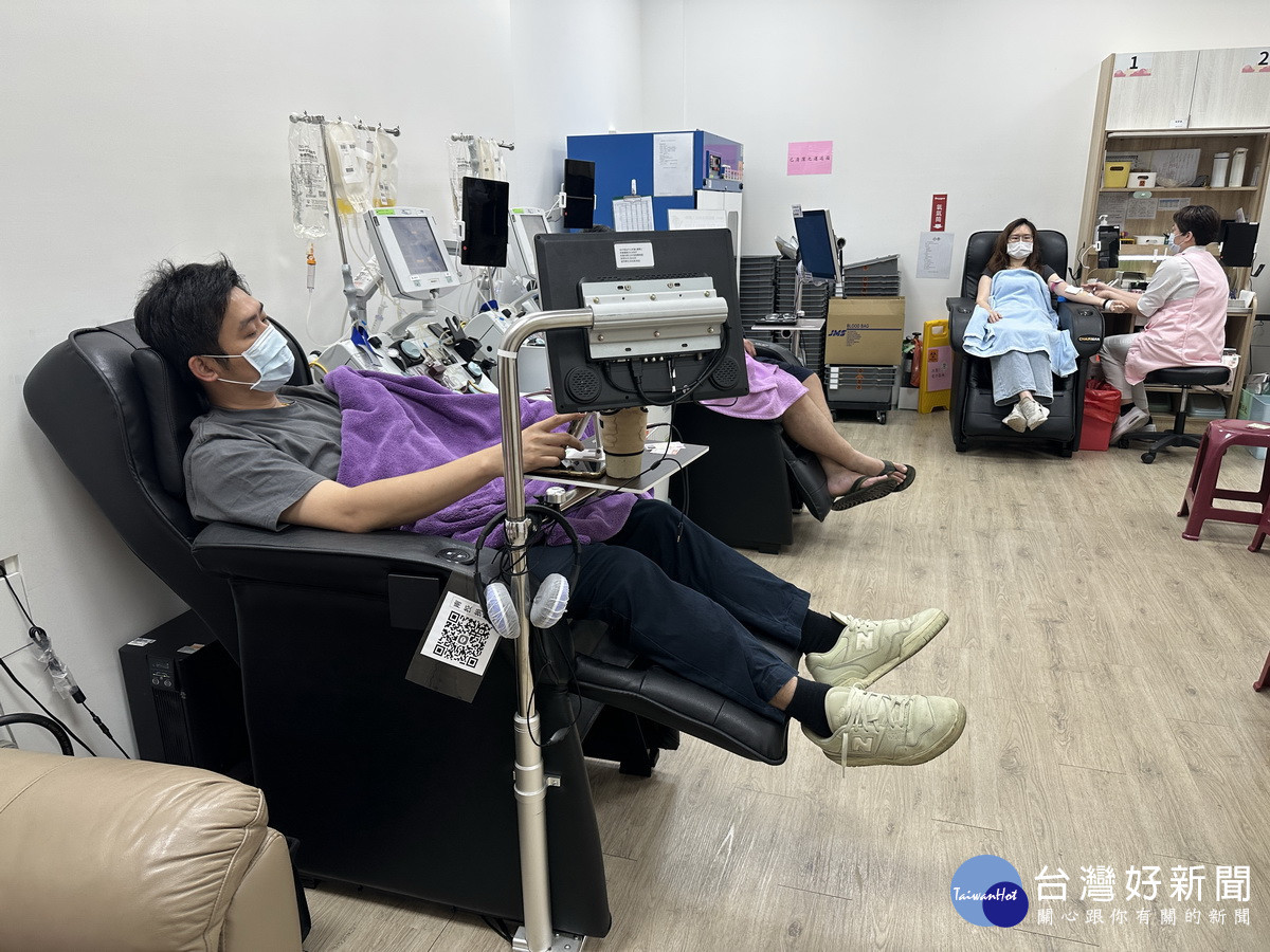 忘年關懷協會辦公益捐血十分踴躍。(記者扶小萍攝)