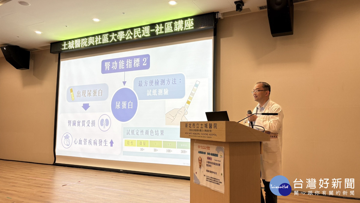 「醫療與社區的社會實踐」系列講座聚焦民眾關心的健康議題,腎臟內科主任蕭景中以「小便有泡泡尿是洗腎警訊嗎?」說明蛋白尿與腎臟疾病的早期徵兆。