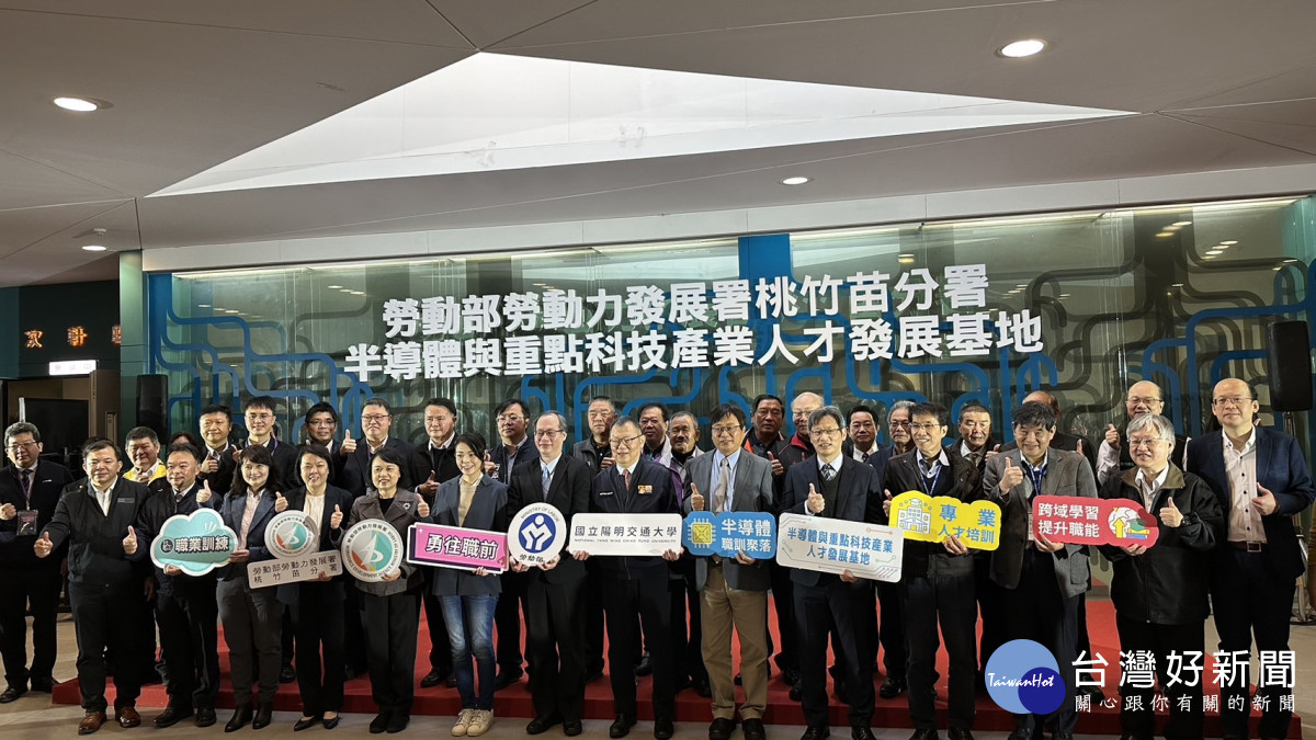 勞動部勞動力發展署桃竹苗分署與國立陽明交通大學合作辦理「半導體與重點科技產業人才發展基地」23日揭牌啟動,期許透過產官學三方的創新合作模式,加速人才引流至半導體與重點科技產業,112年1月起將陸續開辦半導體、光電及人工智慧等職前及在職訓練課程共計14班500人次。