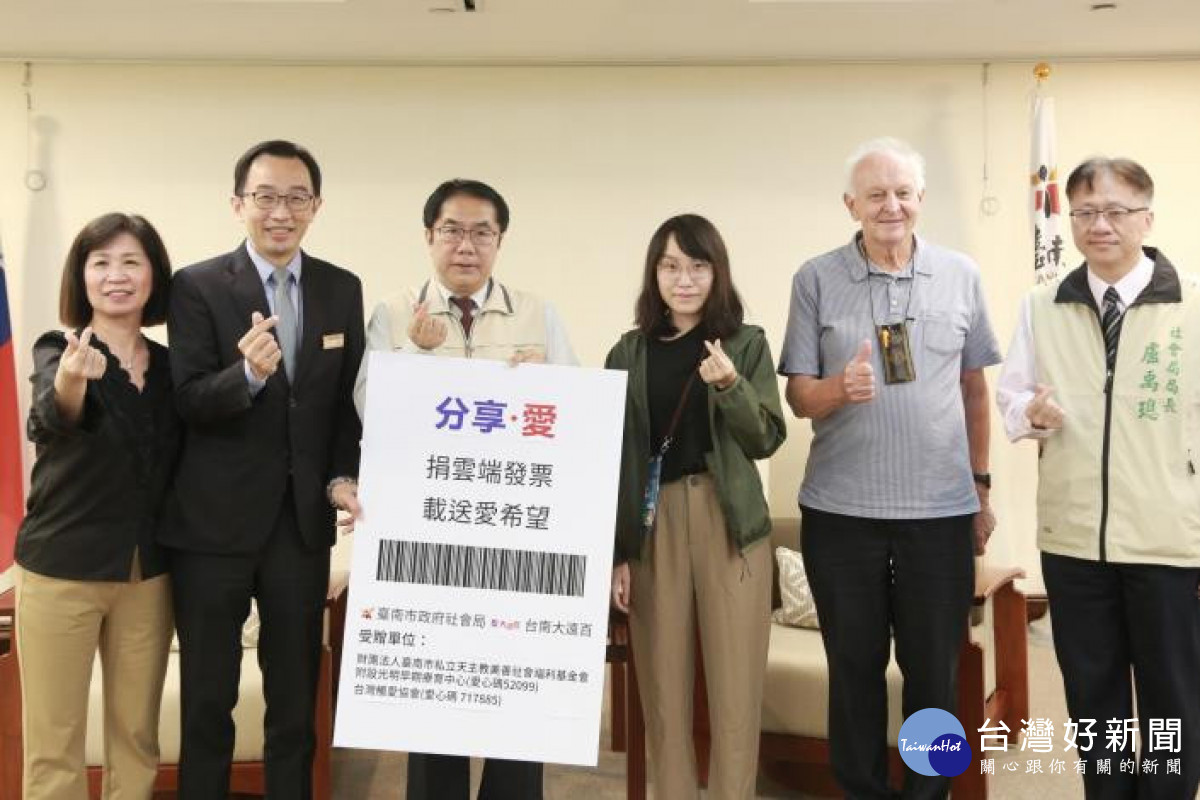 社會局長盧禹璁指出,市府與大遠百合作雲端發票捐贈今年已經進入第5年,目前已推薦19個社福團體參與該活動。今年受贈團體為財團法人台南市私立天主教美善社會福利基金會附設光明早期療育中心(愛心碼52099)及台灣觸愛協會(愛心碼717885),這兩個團體主要服務對象為身心障礙家庭、發展遲緩幼童,及弱勢青少年的支持服務。