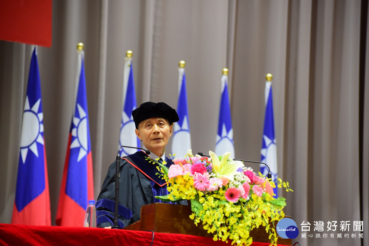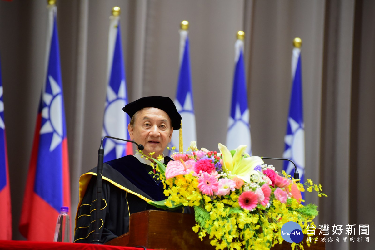 中原大學校長李英明鼓勵中原畢業生慎用數位科技,造福人群,成為改變世界的力量。